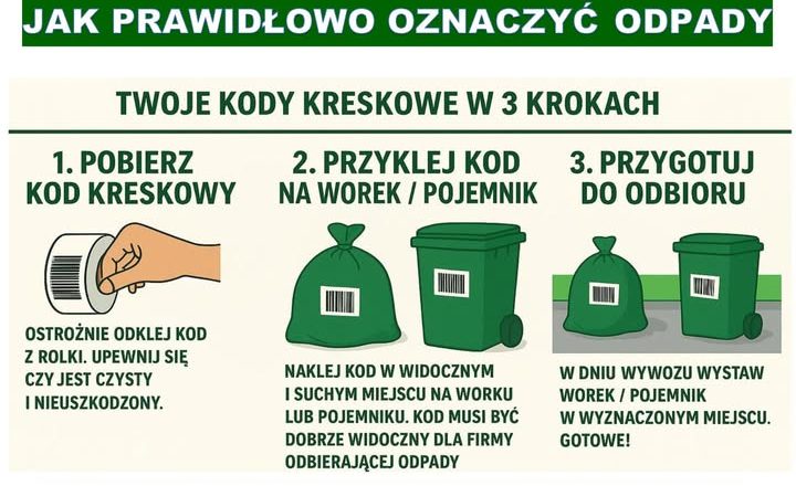 Od 1 stycznia 2026 roku na terenie Gminy Krasne zostanie wdrożony nowy system identyfikacji pojemników i worków na odpady komunalne. System będzie oparty na indywidualnych naklejkach z kodami kreskowymi, przypisanych do konkretnego gospodarstwa domowego.