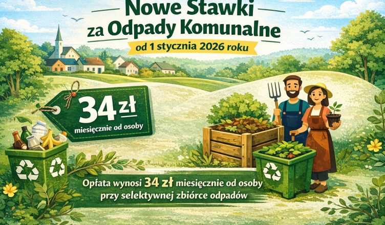 o utrzymaniu czystości i porządku w gminach oraz zgodnie z Uchwałą Nr XLV/331/2021 Rady Gminy Krasne z dnia 30 listopada 2021 r., ustala się stawki opłaty za gospodarowanie odpadami komunalnymi obowiązujące od dnia 1 stycznia 2026 r.